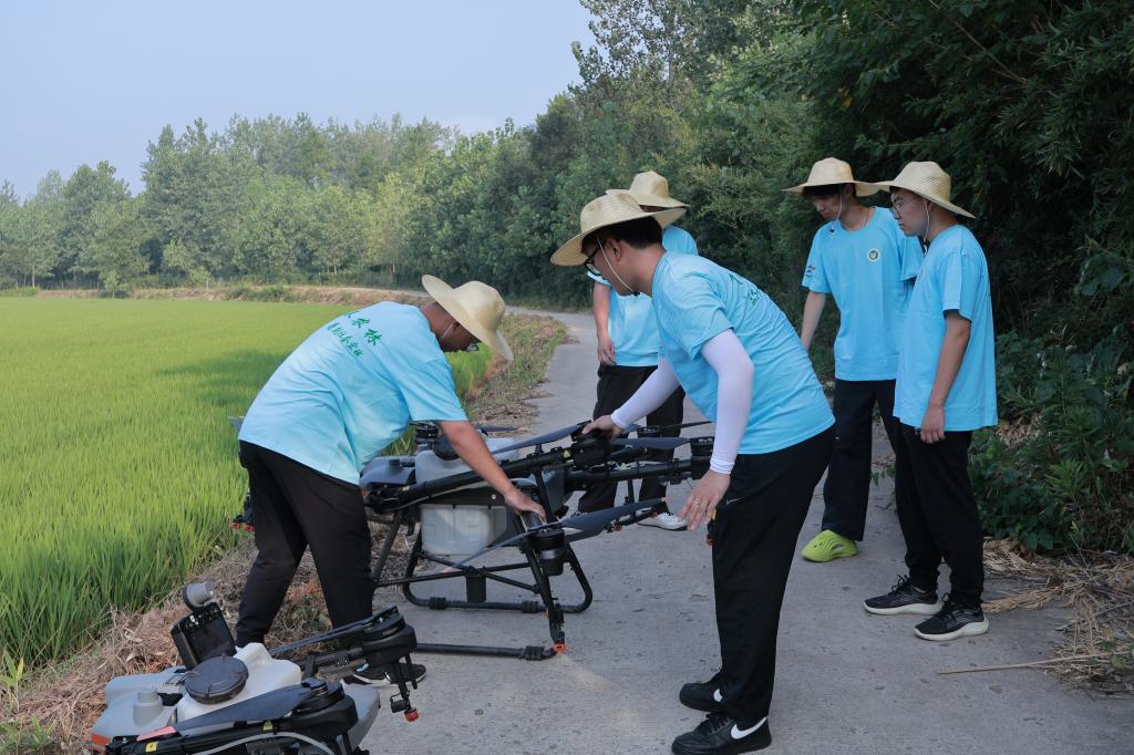 “三实”小分队实践团来到下蜀镇亭子村,将科技送到田间地头。8月,正值水稻生长的关键时期,团队成员利用所学专业知识,操控无人机为当地20余亩水稻精准喷洒农药,实现了农药使用的科学化、精准化,有效提高作业效率,并减轻了当地村民的负担。值得一提的是,今年6月份,机电工程学院“惠农飞防”公益助农社团组织学生前往边城镇,运用现代化机械设备高效完成小麦收割任务,助力农业生产,收获当地村民的好评。