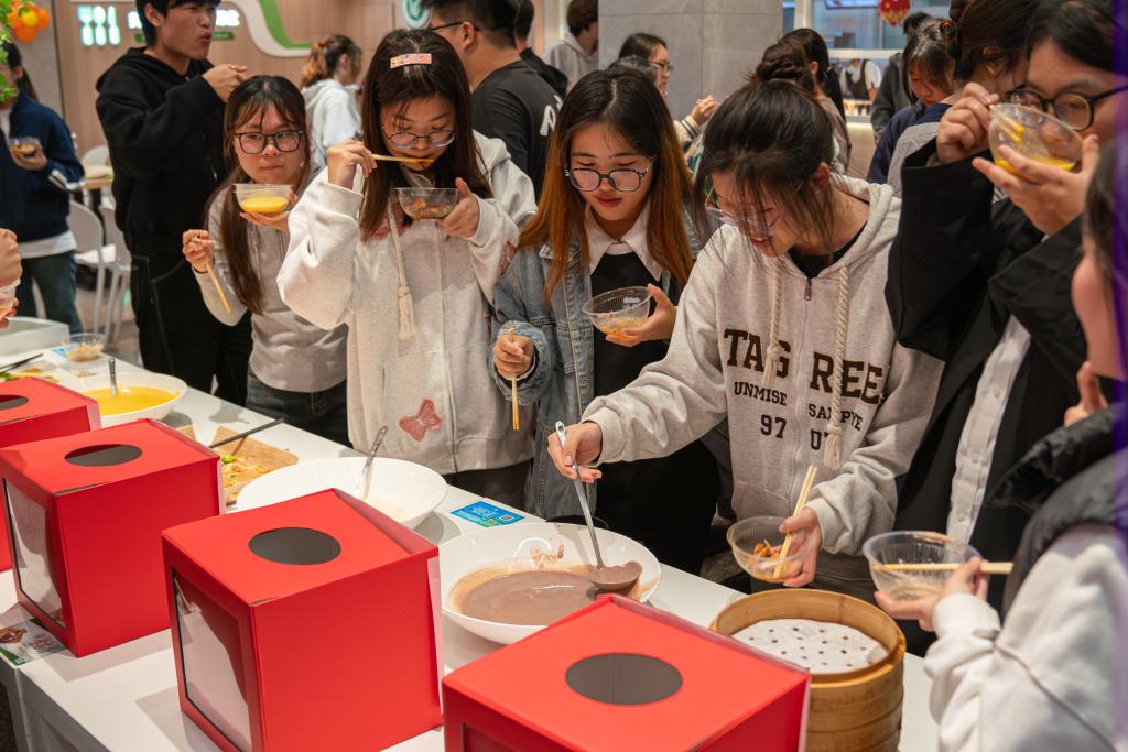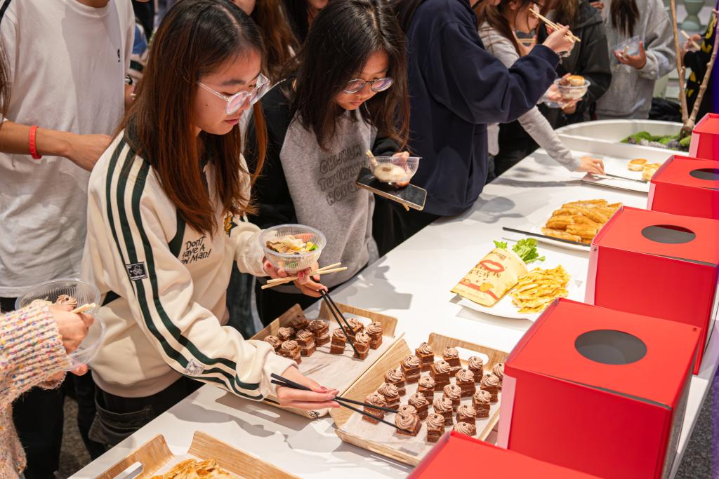 活动现场,热气腾腾的美食整整齐齐地排列在桌子上:色泽金黄的油条、汤鲜粒大的馄饨、滑嫩美味的口水鸡、金黄酥脆的生煎包……令人目不暇接,学生代表们穿梭于一道道美食之间,仔细端详着菜品的色泽与摆盘,认真品味着不同食物的独特美味,公平公正的为自己喜爱的菜品投下宝贵的一票。