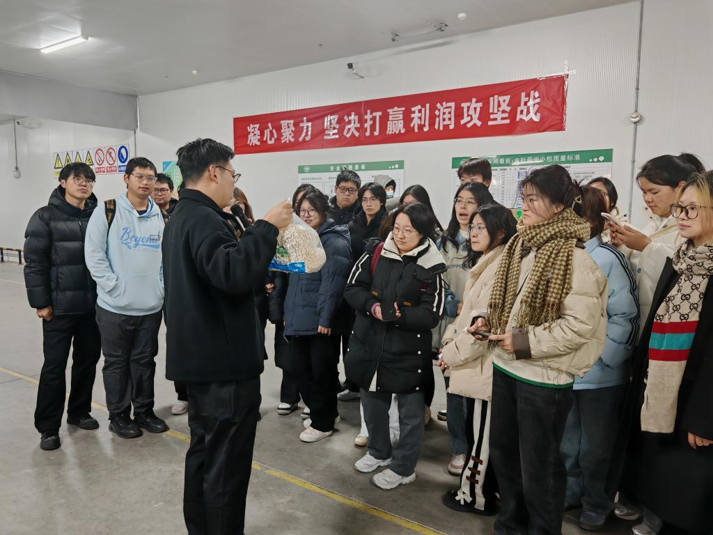 在江苏雪榕生物科技有限公司,食用菌生产与加工技术专业60余名师生通过实地参观、现场讲解等形式,了解食用菌生产相关知识。同学们先后参观了公司的菌种生产保藏实验室、菌种发酵车间、灭菌车间、分析检测实验室、生育室及采收包装车间,亲眼见证了从原料准备到成品包装的食用菌生产全过程,了解了自动化生产线的高效运作。