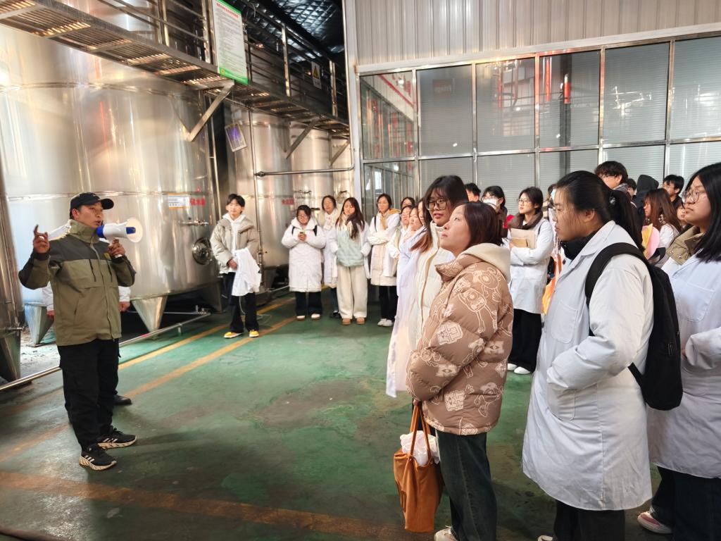 在容稻酒业(江苏)有限公司,同学们参观了园区、酒业生产车间以及工艺流程,在实践中学习发酵食品生产技术、酒类生产技术,将课本上的理论知识与实际操作相结合,提升自己的专业技能和综合素质。
