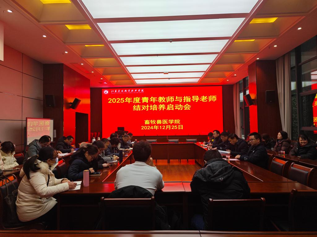 12月25日下午,畜牧兽医学院在大学生艺术中心101会议室开展2025年青年教师“导师制”培养启动会。畜牧兽医学院领导班子成员、近三年入职青年教师及指导教师出席会议。