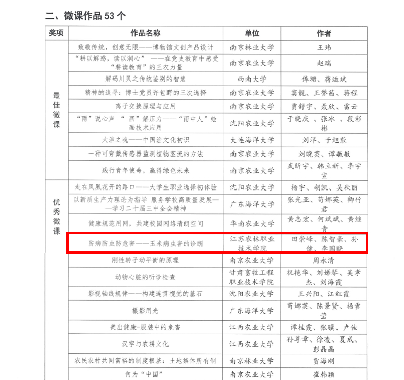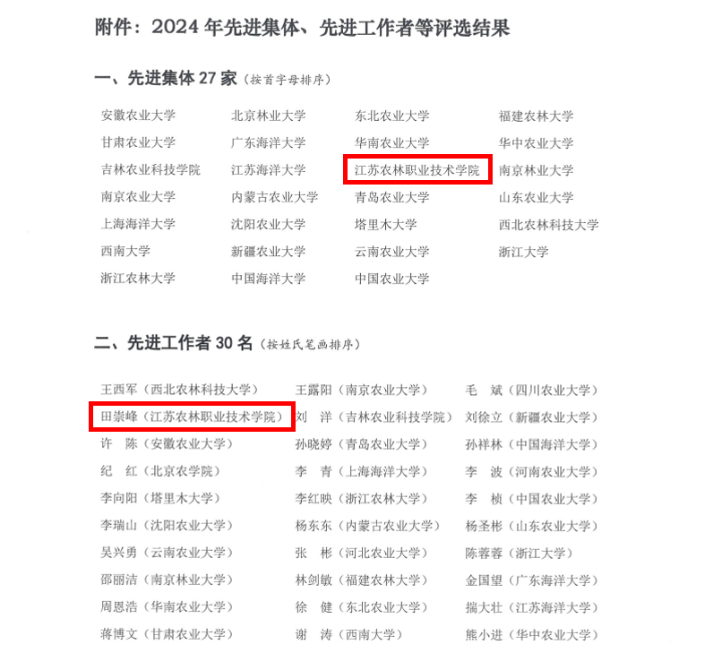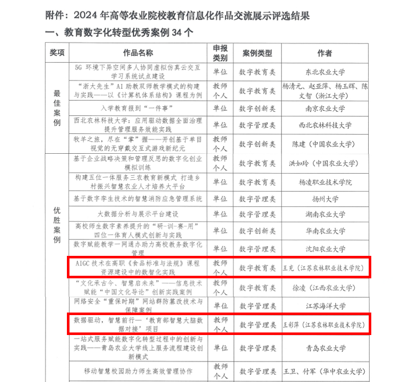 近日,中国教育技术协会高等农业院校分会公布了2024年高等农业院校教育信息化建设先进集体和先进工作者、教育信息化作品交流展示的评选结果,学院被评选为先进集体(高职院校唯一),田崇峰被评为先进工作者(高职院校唯一),3项作品获评优胜案例、优秀微课。