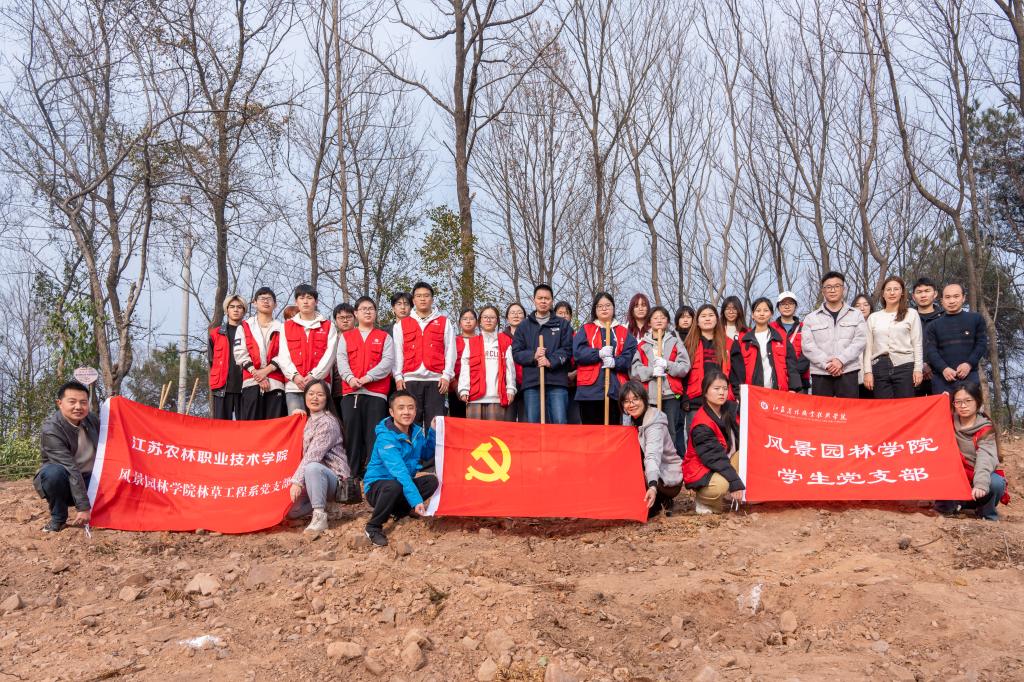 在第47个植树节到来之际,风景园林学院组织党员师生、青年团员走进句容市磨盘山林场开展“党旗飘扬林海间,校企携手培新绿”义务植树暨主题党日活动,将红色信仰与绿色使命深度融合,以实际行动践行“绿水青山就是金山银山”的生态理念。