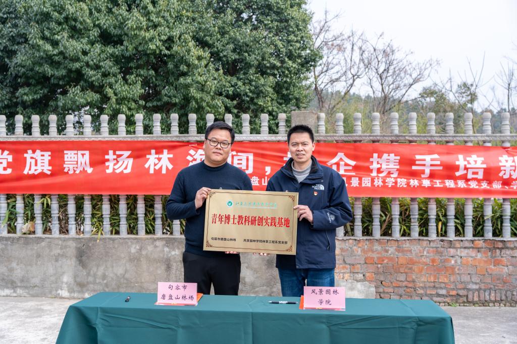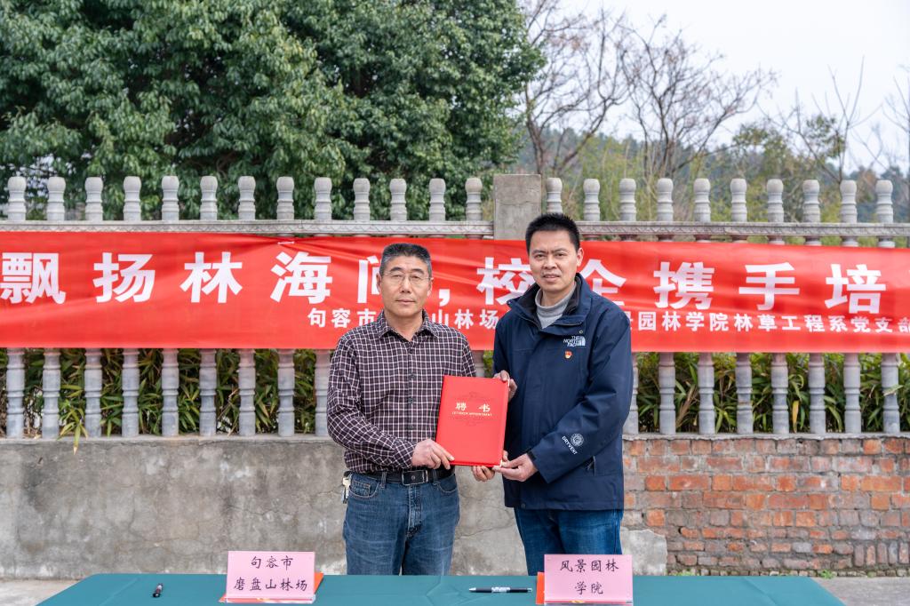 课后,风景园林学院党总支书记熊伟为马文明颁发了威尼斯WNS9778“企业导师”聘书,并与句容市磨盘山林场签订共建协议、挂牌“青年博士教科研创实践基地”,共建围绕“党建+业务”融合发展、校企实践基地、人才培养等方面展开。