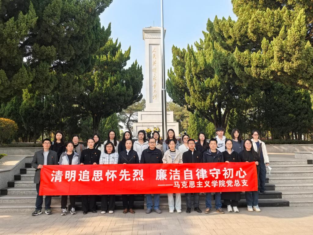 4月2日,在清明节来临之际,马克思主义学院和党委组织部联合开展了“清明追思怀先烈,廉洁自律守初心”主题活动,40余名教师和学生代表怀着崇敬的心情,前往巫恒通旧居和句容市兆文山烈士陵园缅怀革命先烈,传承红色基因。