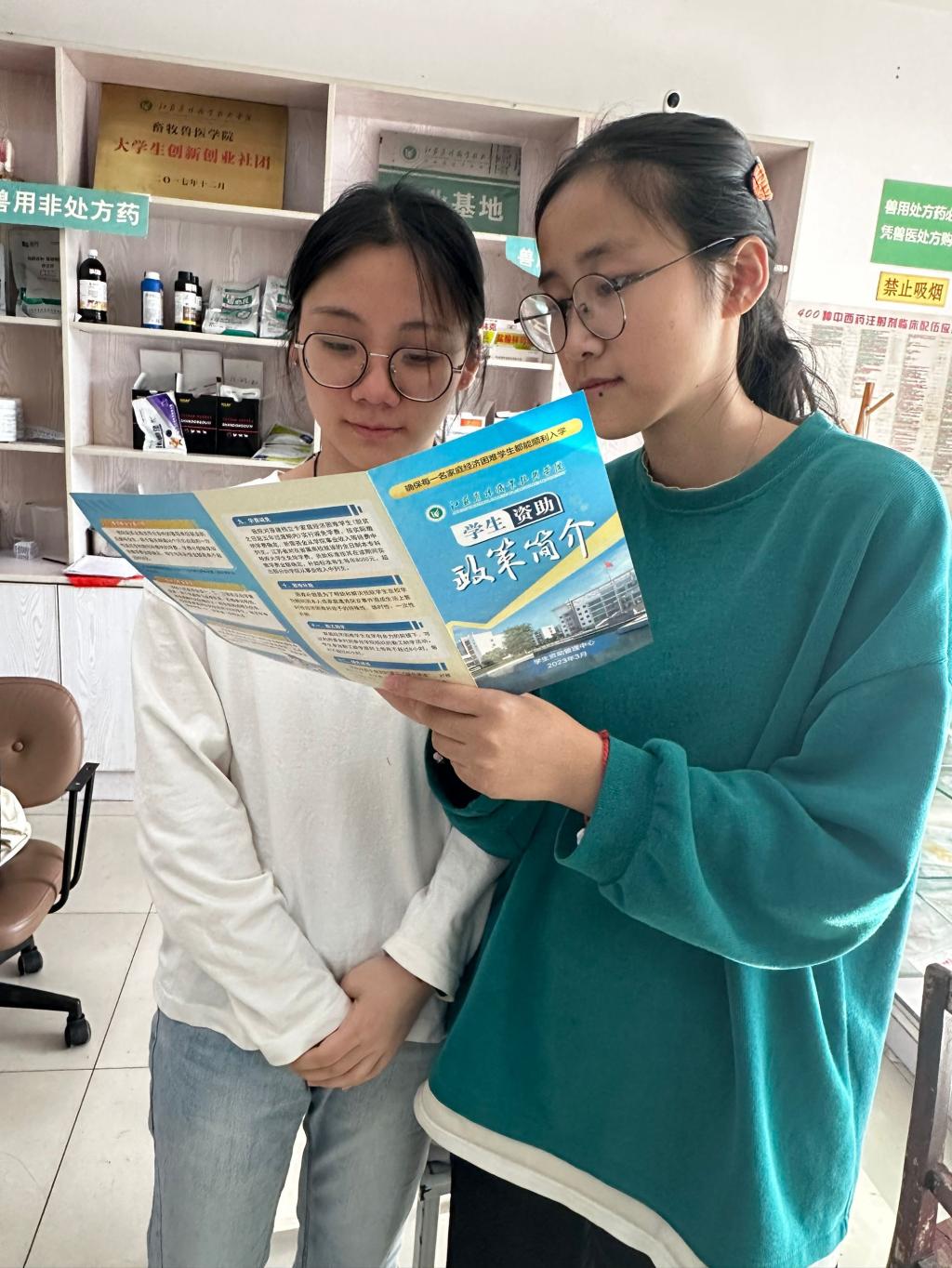 设立资助政策咨询点,多措并举显关怀。畜牧兽医学院在一站式服务社区设立了资助政策咨询点,由专职教师和资助宣传大使为同学们答疑解惑,确保政策宣传到位、落实到位。